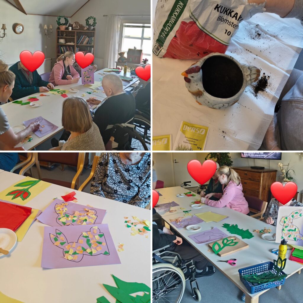 Viriketoiminnassa on tehty keväisiä ja pääsiäiseen liittyviä askarteluja. Lisäksi asukkaiden kanssa on istutettu rairuohoa.